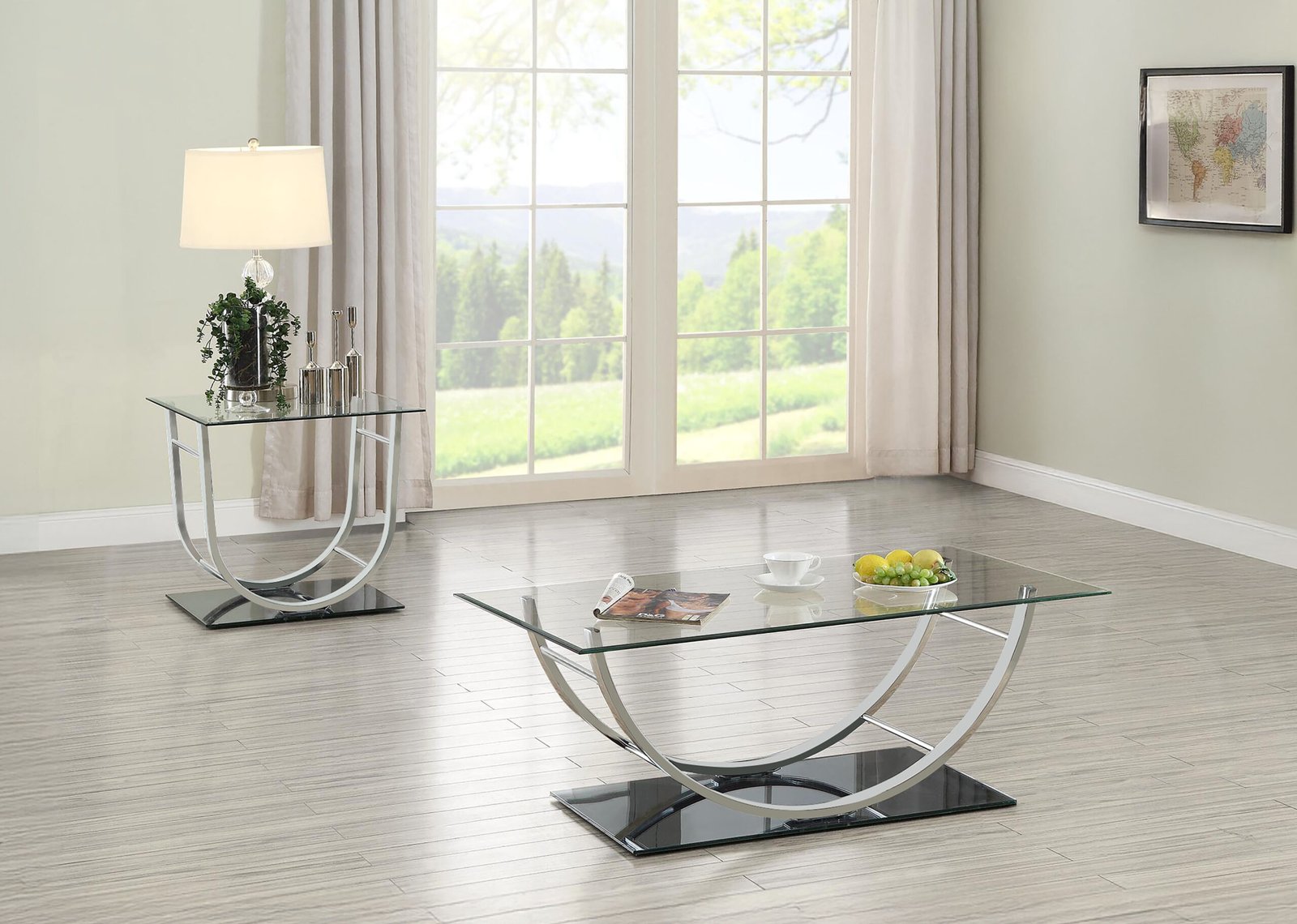 Danville 2-piece Glass Top Coffee and End Table Set Chrome