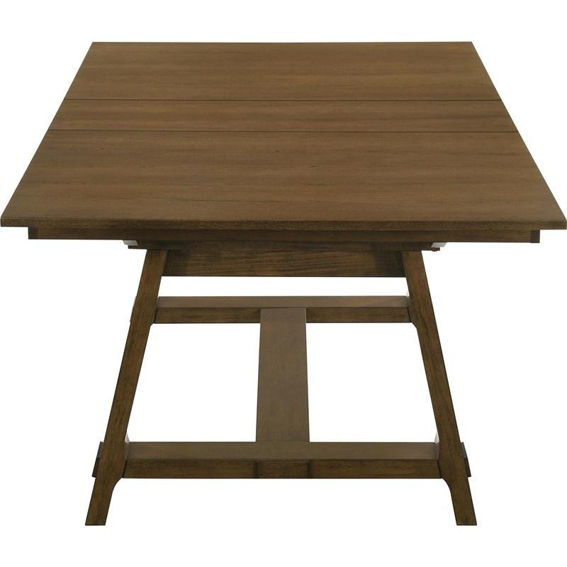 The Everly 5-Piece Standard Height Dining Set brings a stately presence and rustic luxury to your home. This Everly 5-Piece Standard Height Dining Set serves as a sleek and chic centerpiece featuring a versatile rectangular trestle table. It highlights rustic style and impeccable craftsmanship perfectly. Furthermore, the self-storing leaf adds a dazzling sophistication and functionality to your space. These details offer a bold statement for any lavish retreat.