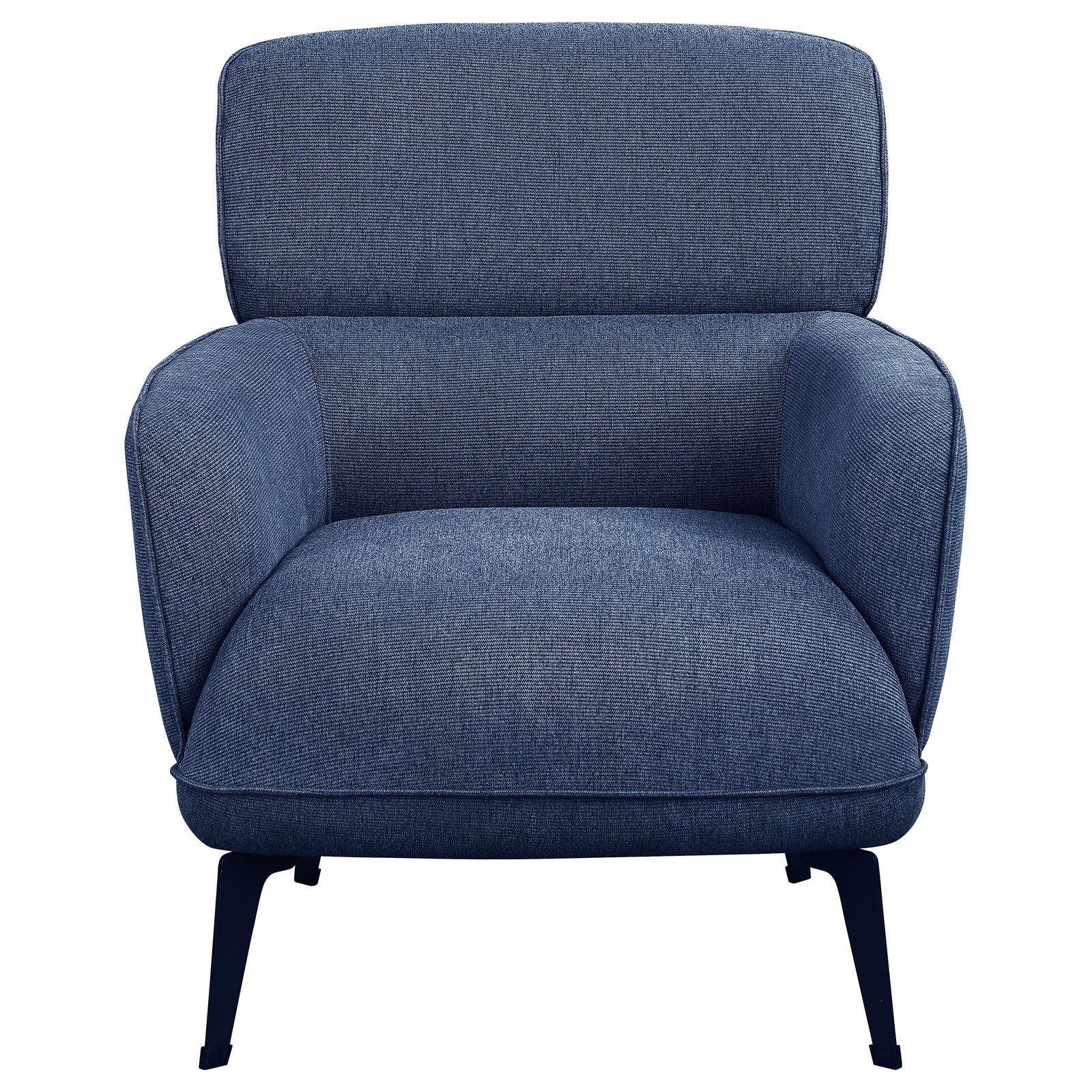 Check all the boxes for a comfortable and stylish addition to your living space. This chic accent chair reflects the best of both modern and transitional style elements. Gorgeous upholstery covers a chair made of wood products and padded with foam to create a luxurious seating experience. Rounded track arms and a deep non-removable seat cushion embellish the design of a chair that coordinates with a sleek seating group or sits alone in a library or bedroom. Set atop chic black metal legs, this chair becomes a favorite spot for stylish relaxation.