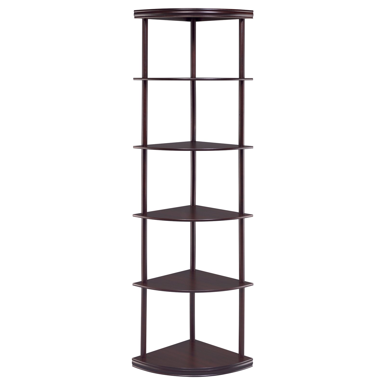 Classy and compact, this four-tier bookcase is a convenient option for a small space. It’s designed to fit easily into a corner for space-saving convenience. Made from rubberwood and other high-quality materials, it provides a safe, sturdy spot to display books and keepsakes. A warm, rich cappuccino finish adds elegance and depth. Whether placed in a bedroom, den, or office, this bookcase is sure to enhance any room.