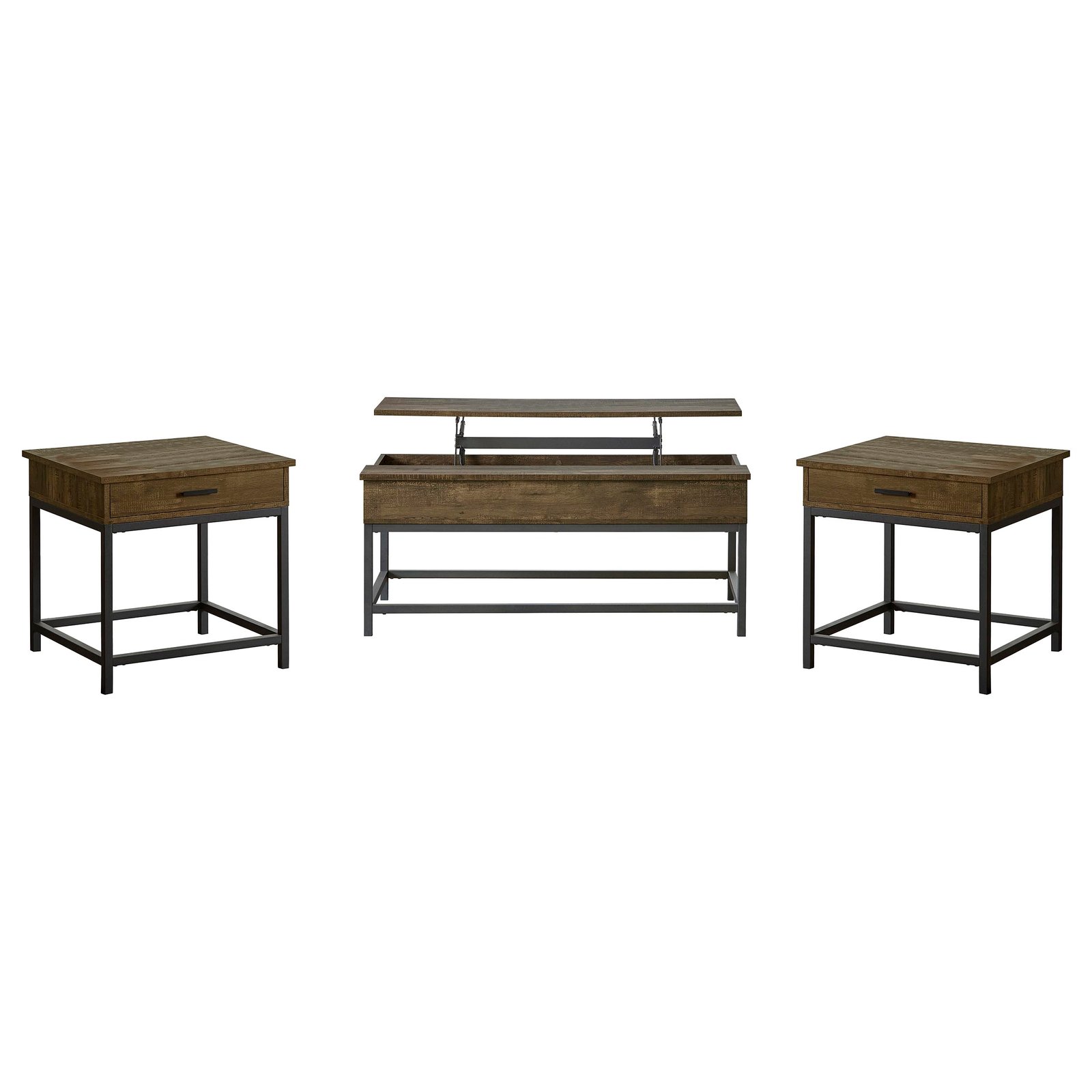 This table set includes a stylish coffee table and an elegant end table, both finished in a warm brown oak veneer. Together, they create a cohesive and functional addition to your living space. The coffee table features a spacious top and a versatile lift-top design, while the end table provides a smooth top and a lower shelf for extra storage. Built for durability and practicality, this set combines modern aesthetics with essential utility, offering a complete solution for your living room needs.