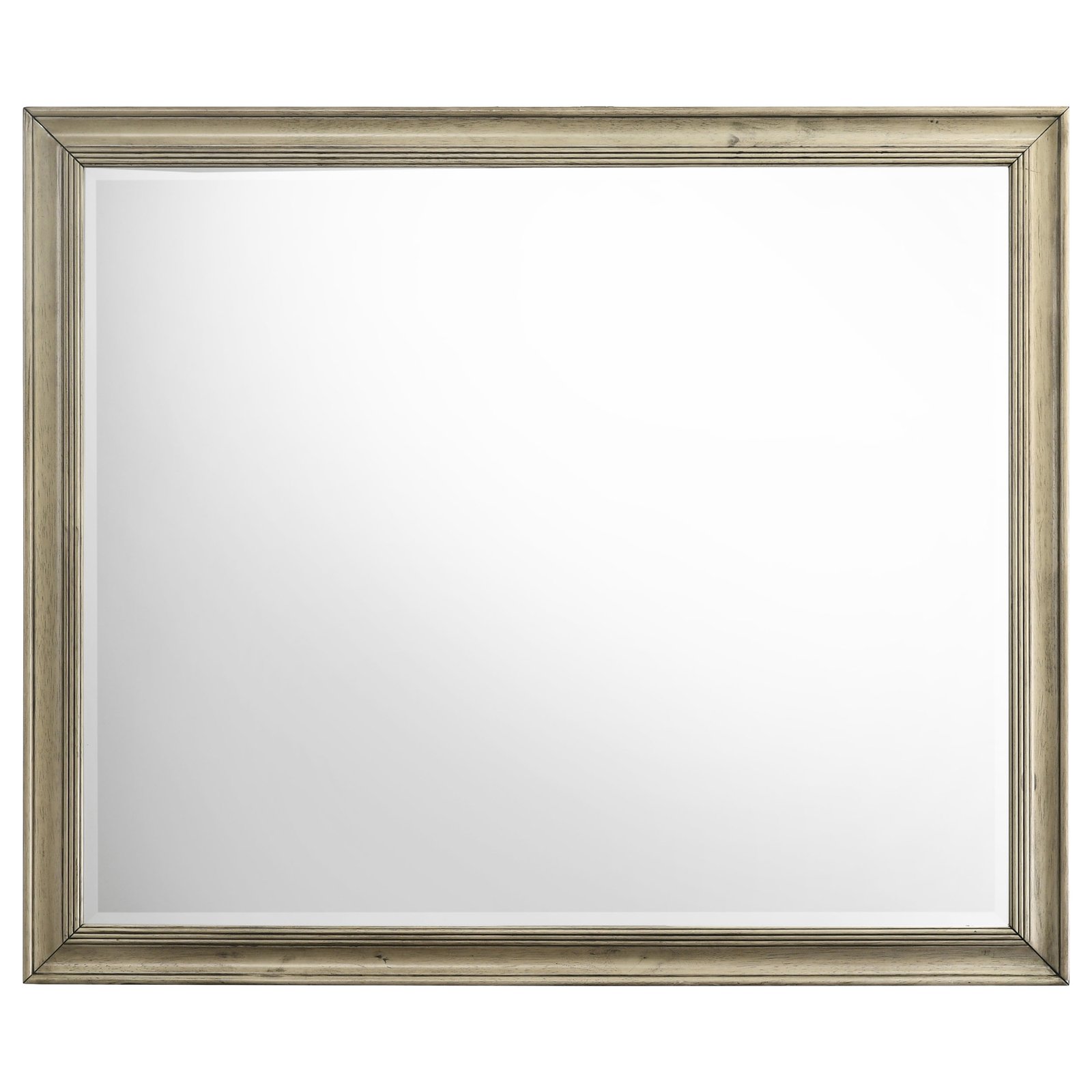 Complete your bedroom with a modern framed mirror. Perfect over your dresser, it’s a lovely complement to the collection. It features molded trim with linear elements that create a sense of texture and dimensionality. A rustic beige wood grain finish is a neutral touch with stylish presence. The glass in this mirror is beveled, adding depth and dimensionality.
