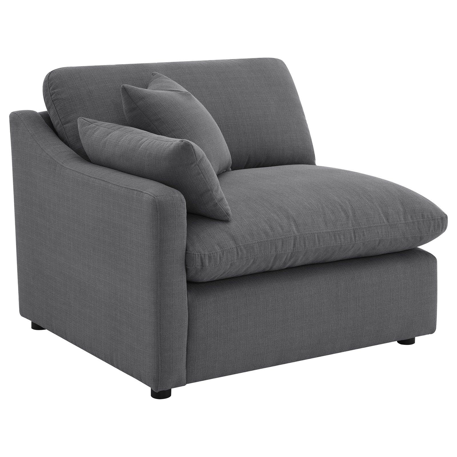 Enhance your modular seating arrangement with this left arm facing (LAF) chair, designed to bring both style and versatility to your living space. Upholstered in a sophisticated charcoal grey performance fabric, this chair offers a modern aesthetic that blends seamlessly with various decor styles. The plush cushioning provides exceptional comfort, making it an inviting spot to relax. Its left armrest design makes it perfect for configuring your sectional exactly how you want it, whether as part of a larger setup or as a standalone accent. Crafted with a focus on durability, this LAF chair is a stylish and practical addition to any room.