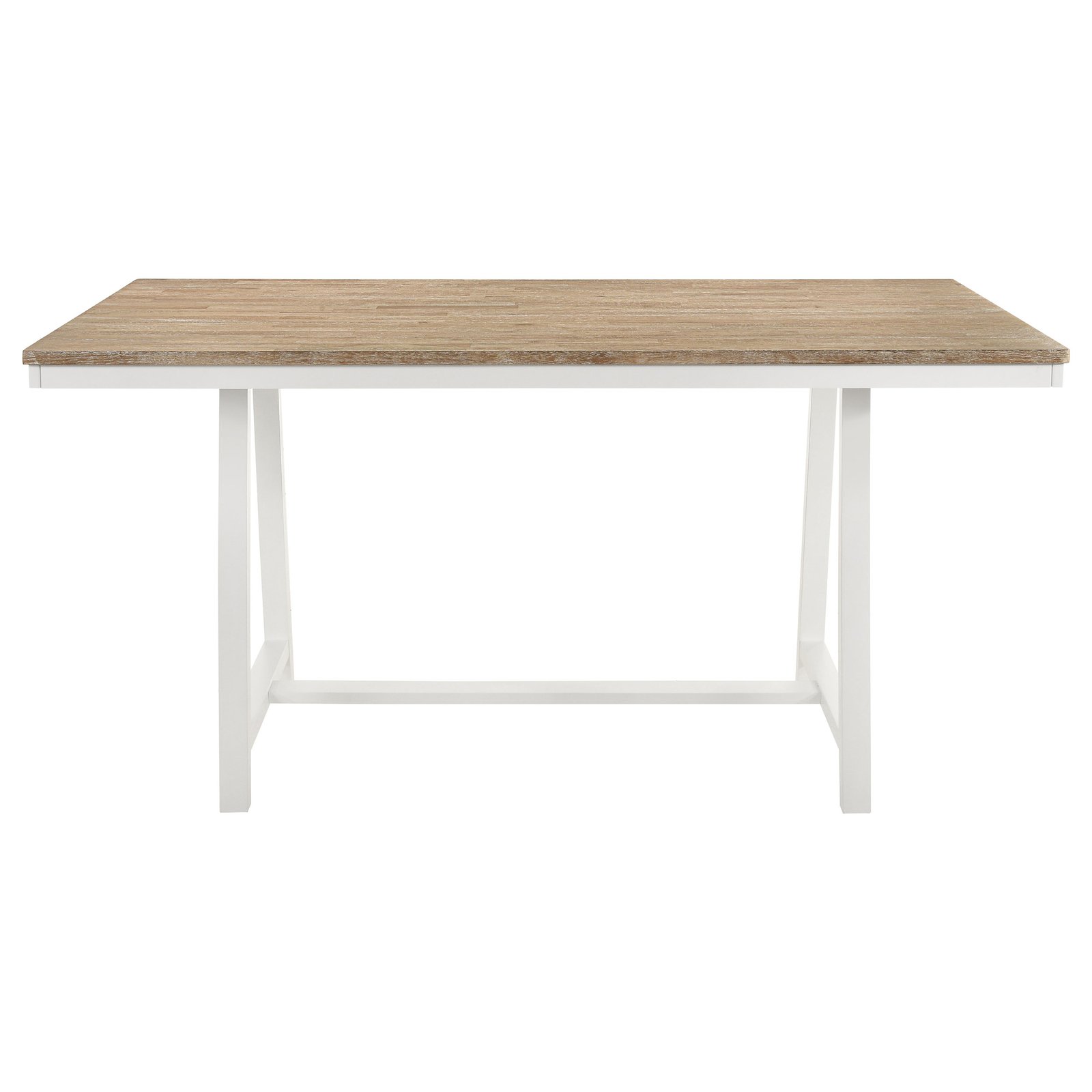 Establish a welcoming aura in your kitchen or dining room with a modern farmhouse dining table. It boasts a crisp silhouette complete with an angular trestle base that adds the perfect dose of character and charm. The base of the table receives a crisp white finish that’s clean and precise for understated style. The tabletop features a warm brown wood grain finish complete with wire brushed that achieves the perfect textural effect. Perfect for breakfast with the kids before school or lounging over a casual dinner with friends.