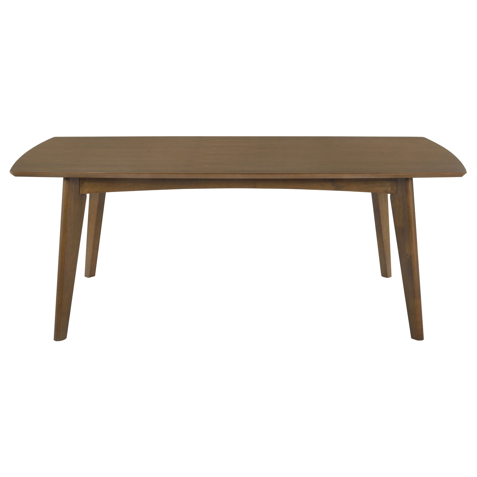 The Malone Collection unveils this mid-century modern rectangular dining table. Fashioned from walnut veneers and finished in rich dark walnut color. Angled legs and solid construction make for durability and sturdiness. As perfect for a cabin in the woods as for a contemporary loft in the city center. Complete the set with corresponding contemporary chairs (sold separately).