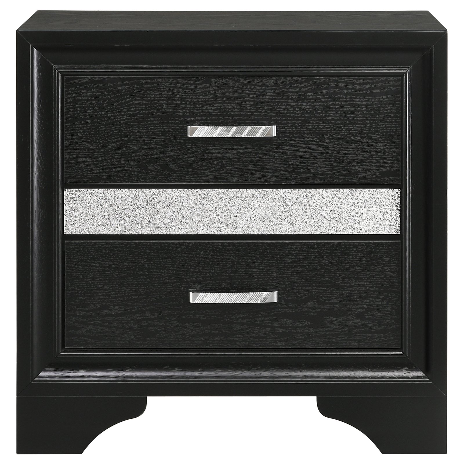 Infused with timeless glamour, this three-drawer nightstand brings refined character to any bedroom. Its linear profile is accented by elegant framing and a glittering center panel that conceals a hidden felt-lined drawer, ideal for delicate accessories. Smooth metal-extension glides ensure effortless drawer operation, while crystal-inspired pulls catch the light with radiant sparkle. Built from engineered wood and finished in a textured laminate veneer, it delivers durability with sophisticated transitional charm.
