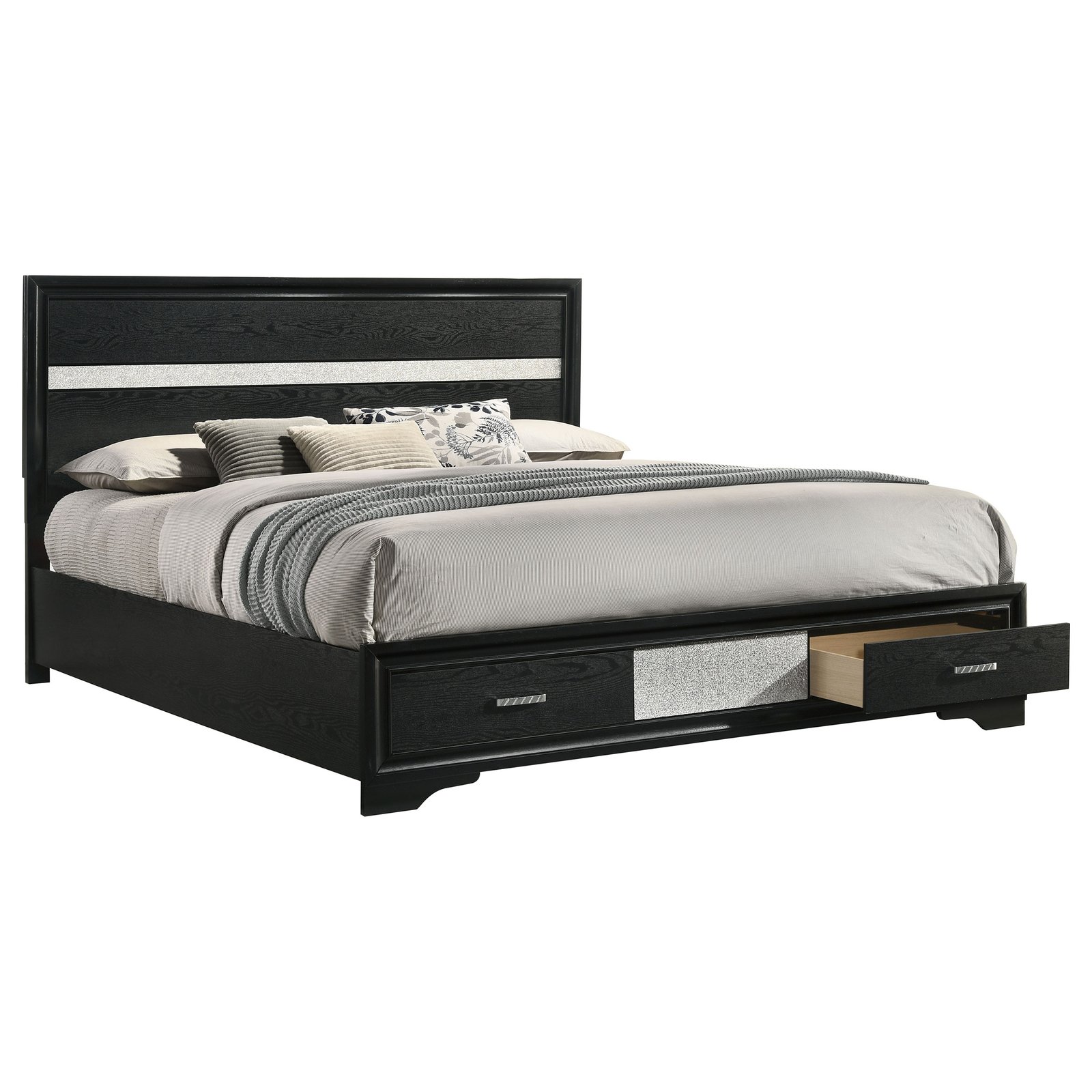 This alluring bed from the Miranda collection has both fashion and function. It features crisp lines and a headboard that’s as simple as it is impressive. The footboard is built with two roomy drawers to hold extra sheets and blankets. The bed has an effortless timelessness and elegance. Add to the bedroom for a charming ambiance that’s sure to please.