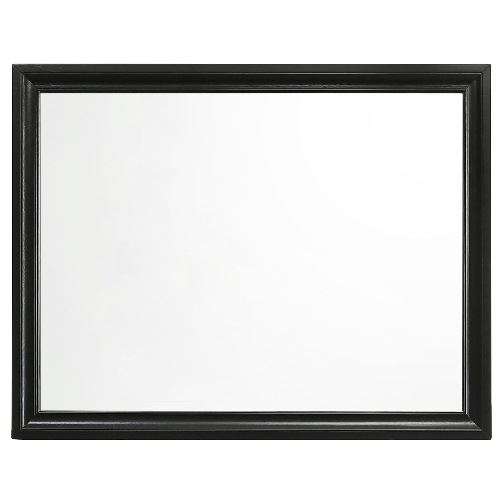 Classic yet versatile, this dresser mirror enhances any bedroom with timeless appeal. Designed with a clean, rectangular silhouette, its framed profile introduces elegant dimension and depth. A beveled glass surface adds refined visual clarity, reflecting light beautifully across the room. Built from engineered wood and finished with a protective laminate veneer, this mirror offers both durability and sophistication when paired with a matching dresser or case piece.