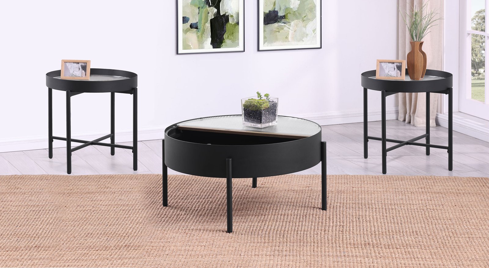 Ozella 3-piece Round Coffee and End Table Set Sandy Black