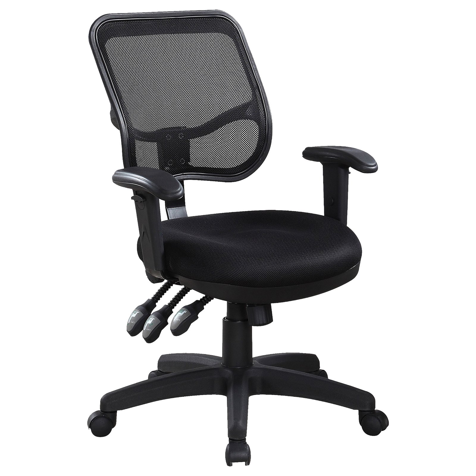 Work productively in exceptional comfort. A home or business office benefits from ergonomically upgraded seating, and this office chair fills the void. Stylish mesh on its seat back offers breathability to avoid moisture and mold. Sit comfortably on a molded seat and take advantage of multiple adjustability features. A spoke base with caster wheels ensures optimal mobility throughout the work day.