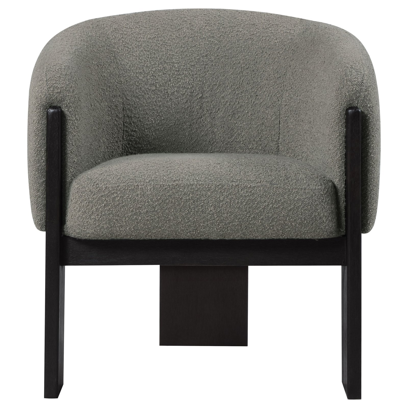 Bring updated style and sophistication to your living room or den with a modern accent armchair. It boasts an inviting rounded silhouette with sloping arms. Three legs in a black finish add a sculptural sensibility. Textured boucle upholstery creates rich texture and depth, perfect for entertaining or lounging. Enjoy the plush softness of foam cushions in any setting.